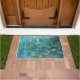 This design features a painting by French impressionist artist Claude Monet (1840–1926). It shows the an attractive arrangement of flowering water lilies on the pond at his home in Giverny, northern France. The lilies are painting in beautiful shades of turquoise and green. The original work was completed in 1915, and it is now in the collection of the Neue Pinakothek in Munich, Germany.