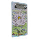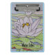 Coloured pencil drawing outlined in pen. Water Lilies serve more than one purpose. They keep water cool, provide shade and shelter to fish, and are beautiful. May this design help you to enjoy the beauty of water and what lives in it, as you use this clipboard.