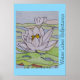 Coloured pencil drawing outlined in pen. Water Lilies serve more than one purpose. They keep water cool, provide shade and shelter to fish, and are beautiful. May this design help you to enjoy the beauty of water and what lives in it, as you enjoy this print.