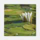 This design features an image of water lilies, a type of aquatic plant that is often seen growing in ponds. There is a beautiful white flower in bloom.