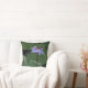 The image on this 16” Throw Pillow is an original photograph by MaeFlowers of a water lily, a flower blooming amid the lily pads floating on the water. The flower is a lovely lavender blue colour, standing out from the dark green, round lilypads.
