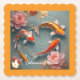 A minimalist artwork capturing the serene beauty of a koi pond, where graceful fish glide beneath the water's surface. Subtle rose and gold accents evoke a sense of peace and harmony, while symbolising good fortune and the timeless tranquillity of nature's delicate balance. "Original Image was generated by Meta AI. AI generated artwork. Licensed under CC BY-SA 4.0."