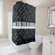 Bring a harmonious touch to your bathroom with this stylish piano-themed shower curtain. Featuring a bold black-and-white piano key design across the centre, it’s patterned with the words "Water Music" in flowing script typography. The elegant green and blue words on a black background create a striking, modern aesthetic. A fun and unique gift for music lovers, this curtain transforms your bathroom into a mini concert hall; perfect for those who love to sing in the shower!