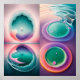 Vibrant, abstract forms create mesmerising circular patterns in a gradient of colours. Each part of the composition features soft transitions between shades, enhancing the ethereal and dreamy quality.