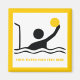 Water polo player black silhouettemagnet that displays a minimalist pictogram icon of a black silhouette of a water ball player holding his ball in front of the goal and your text on white background with yellow border. See lots of designs at our Sports Gifts store.