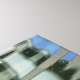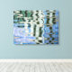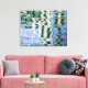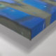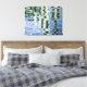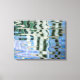 An unusual photograph of buildings reflected in water creating a colourful pattern printed on a canvas.