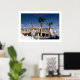 On this Poster - Yes, this view looks as if it’s upside down. It’s actually a straight up, no filter effects, original photograph by ZoeSPEAK of the reflection in a canal on the gulf coast of Florida. We see bits of boats docked in front of a house, with palm trees and a deep blue sky. But everything is beautifully rippled. Near the top of the image is a reflection, in red letters, of the words “water...reflection”.