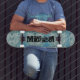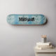 This skateboard will make you feel like you are riding the waves with it’s abstract rippling water image repeated on it. The text is in a cool youthful font that will fit right in a the skate park. Easily personalise i with your own name.