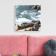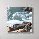 This beautiful canvas features a rocky seashore with swirling white water splashing against the rocks.