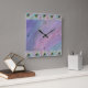 This lovely clock will make a perfect accent piece in any room with it's soft watercolor washed background in shades of purples, pinks and blues while accented at the top and bottom with golden swirls and vibrant peacock feathers. Lots of room to add initial, monogram or name to personalise.