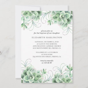 Succulent baptism. Watercolor mint cactus. Cacti Invitation