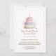 Watercolor 1st Birthday Invitation with Cake pink