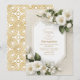 Watercolor 3D white flowers gold Bridal Shower Invitation