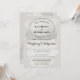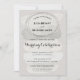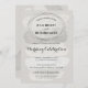 Modern and simple minimalist wedding invitation cards for your special occasion! Featuring a geometric silver circle frame around the bride's & groom's name with soft white & grey watercolor brush abstract design border in grey colour background. Customise your wedding details, date, venue and more at the front.
