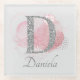 Pretty Initial / Monogram design features silver glitter letter D with abstract watercolor pink background and customisable text to add name or other message.