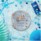 Cute Boy Baby Shower paper plates! Design features a watercolor blue sky background, little boys flying vintage aeroplane, hot air balloons, fluffy clouds and magical stars, a 'ARRIVING SOON - a beautiful Baby Boy' title.