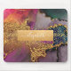 A sparkly, faux gold foil band with your script typography name overlays a rich, gold veined, navy blue, hunter green, pink, and purple watercolor background on this elegant, trendy, girly, custom name mousepad. Makes a chic and stylish statement every time you use it. A great gift for a friend, as well as yourself!