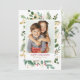 Watercolor and Faux Foil Winter Greenery Photo Holiday Card