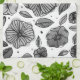 Delicate flowers and leaves made with watercolor shapes and inked details. Black and white palette.