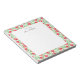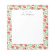 Cute notepad design for teachers feature "a note from" and your name in black block and script lettering, bordered by a pattern of vibrant red watercolor apples and green leaves.