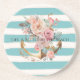 Watercolor Aqua Beach Stripes Floral Anchor Coaster