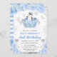 Watercolor Arctic Penguin Floral 2nd Birthday Invitation