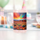 Custom designed can glass style featuring beautiful watercolor style image of the Arizona desert landscape at sunset, on the front and the back of the glass. Handwash recommended to preserve the image on the glass. Image colour may vary on different viewing screens.