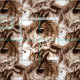 Watercolor eagle owl face art patterned fabric in muted brown tones. Original watercolor painting by Sarah Trett. www.sarahtrett.com