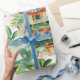 This wrapping paper features a traditional Asian-style pagoda rendered in delicate watercolor strokes, set amidst a lush green landscape. The design draws inspiration from the architectural elegance found in Japan, China, Korea, and Vietnam, capturing the serene beauty of nature intertwined with cultural heritage. The harmonious blend of verdant hues and intricate details evokes a sense of tranquillity and timelessness, making it a versatile piece for various artistic applications.