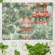 This kitchen towel features a traditional Asian-style pagoda rendered in delicate watercolor strokes, set amidst a lush green landscape. The design draws inspiration from the architectural elegance found in Japan, China, Korea, and Vietnam, capturing the serene beauty of nature intertwined with cultural heritage. The harmonious blend of verdant hues and intricate details evokes a sense of tranquillity and timelessness, making it a versatile piece for various artistic applications.