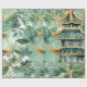 This wrapping paper features a traditional Asian-style pagoda rendered in delicate watercolor strokes, set amidst a lush green landscape. The design draws inspiration from the architectural elegance found in Japan, China, Korea, and Vietnam, capturing the serene beauty of nature intertwined with cultural heritage. The harmonious blend of verdant hues and intricate details evokes a sense of tranquillity and timelessness, making it a versatile piece for various artistic applications.