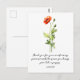 Celebrate August birthdays and meaningful moments with this vibrant watercolor Poppy birth flower postcard. Featuring delicate, hand-painted poppies in soft watercolor tones, this design symbolizes resilience, peace, remembrance, and comfort, making it perfect for expressing heartfelt gratitude. Printed with the thoughtful message: “Thank you for your comforting presence and the peace you bring, just like a poppy.” This postcard is ideal for thanking someone special born in August, including with a gift, or sharing a warm note of appreciation with friends, family, or customers. It also makes a lovely keepsake for poppy lovers and anyone who cherishes floral stationery and botanical art. Whether mailed, tucked into a gift, or displayed as part of a birth flower collection, this August Poppy postcard offers a meaningful and beautiful way to say thank you.