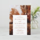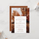 Invite guests to your fall wedding with our autumn landscape wedding invitations. The fall-themed wedding invite displays your wedding details in brown lettering. The background features a watercolor landscape of trees and fallen leaves in an autumn colour palette of brown, beige, burgundy, and orange. The back of the invite displays a solid brown background.