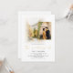 Watercolor Autumn Trees Photo QR Code Gold Wedding. Simply replace the sample photo with your own and personalise with your details. The Wedding Of is in a stylish set handwritten style in gold with a matching gold line border around your photo, and a watercolor scene of a road with trees in fall colours is placed behind your picture. Add your QR code to your wedding website on the back makes this a convenient option for your guests to RSVP and see all the details without the need for separate RSVP and details cards. You can create QR codes for free online. Simply search “QR code creator” and lots of options come up to create for free.