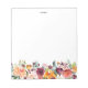 Whimsical floral notepad featuring watercolor illustrations of orange and burgundy flowers with foliage garland. This floral notepad will be perfect as a personalised gift. Personalise by adding a name or short phrase.
