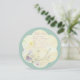 A unique baby shower invitation featuring a watercolor little bird on a branch. The overall flower shape is layered onto a blue-green background.