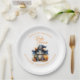Personalised Watercolor Baby Dragon Halloween Baby Shower White Paper Plates | Gender Neutral Pumpkin Orange Design