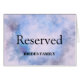 This is a reserved table sign card. It is elegant script calligraphy for fancy wedding party, chic bridal shower, engagement or anniversary. It is classy placement note cards with name of bride and groom family, VIP guests, bridesmaids, groomsmen, best man, maid of honour etc. Text and design can be customised for any invitation card.