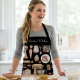 Delight the cook in your house with this personalised apron, featuring a pattern of watercolor baking tools, such as standing mixers, rolling pins and pastry tubes, on a black background. Near the top, the words "[Your Name's] Kitchen" or other text of your choice appear in editable handwriting script.