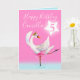 Watercolor whimsy swan personalised age birthday card. Personalise with your own name and age, reads Camille 6. Pretty shades of pink, aqua blue and white. Other matching dancing ballerina swan items available. An original design and whimsy swan uniquely painted in watercolor by for www.mylittleeden.com.