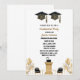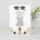 These simple graduation party invitations feature black hats and yellow balloon, and a modern text template that's easy to customise.