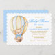 Watercolor Blue Hot Air Balloon Teddy Bear with Blue Bow Baby Shower by Mail Invitation. Gold and Blue Text.