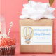 Watercolor Teddy Bear on Hot Air Balloon Baby Shower Bookplate Labels. Blue Text.