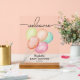 Multi-colour watercolor balloons are a fun design for a baby shower, your details along with the word "Welcome" are featured at the top of this tabletop clear acrylic sign. CHANGE THE SIZE to fit your event and order with or without a wood stand. MATCHING items in our collection.