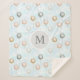 pastel balloons in a navy, gold and blush colours pattern for a nice kids blanket. your own monogram in serif font is centred in a circle