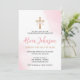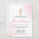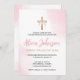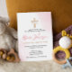 Celebrate your baby girl's special day with our exquisite baptism invitation card. This beautifully designed card features a soft watercolor pink background, adorned with a delicate cross, embodying a sense of grace and purity. The simple and elegant style adds a timeless charm, perfect for this sacred occasion. The invitation is fully customisable, allowing you to personalise the details to make it uniquely yours. Invite your loved ones to share in the joy and blessings of this precious milestone with our heartfelt and memorable invitation card.