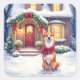Watercolor Basenji Townhouse Christmas Holiday Square Sticker