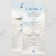 This elegant watercolor wedding menu card captures the serene beauty of a New England beach wedding. Featuring a hand-painted lighthouse overlooking soft dunes and gentle ocean waves, the design sets a romantic coastal tone. Accented with nautical icons like anchors and a ship's wheel, the layout strikes a balance between timeless charm and seaside whimsy. Ideal for summer weddings in Cape Cod, Nantucket, or any coastal location, this menu card is fully customisable, making it a stunning part of any beach-inspired wedding table. Available with matching products.