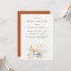 Boho-chic watercolor beach scene, Bridal Shower Invitation. Card features burnt orange colour backing with coordinating earthy desert orange and black template text.