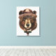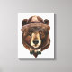 This design features a bear painted in watercolors wearing a hat and bow tie.